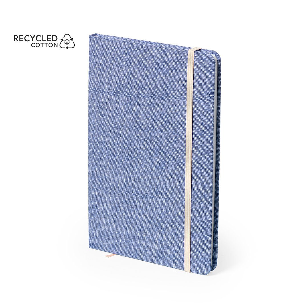 Bloc-notes de la ligne Nature en coton recyclé, avec couverture rigide et fermeture élastique en contraste. À l’intérieur, il comporte 100 feuilles unies et des signets en tissu. Disponible dans une large gamme de couleurs, avec du coton recyclé distinctif sur la couverture arrière.