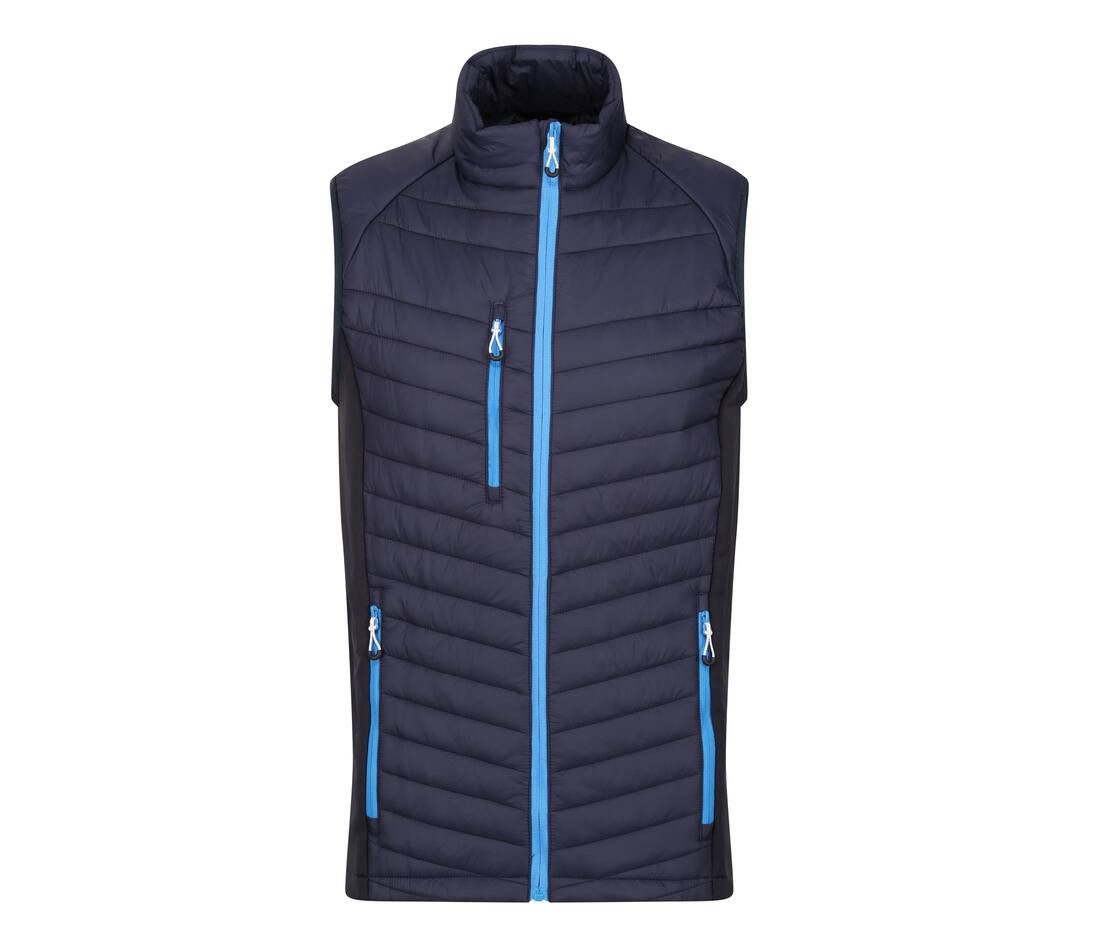 Bodywarmer bi-matière pour homme avec un rembourrage léger recyclé et une finition DWR. Doté de panneaux latéraux extensibles pour plus de confort. Composition : 90% polyester, 10% élasthanne pour les panneaux latéraux, et 100% polyamide pour le corps.