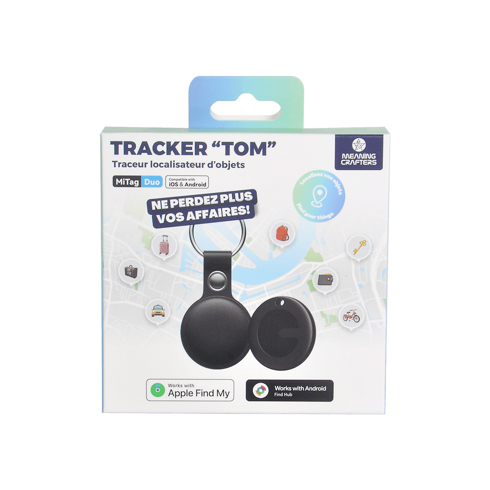 TOM est le tracker compact et intelligent signé Meaning Crafters. Compatible avec Apple Find My ou Google Find My Device, il vous permet de retrouver vos objets instantanément, où que vous soyez.