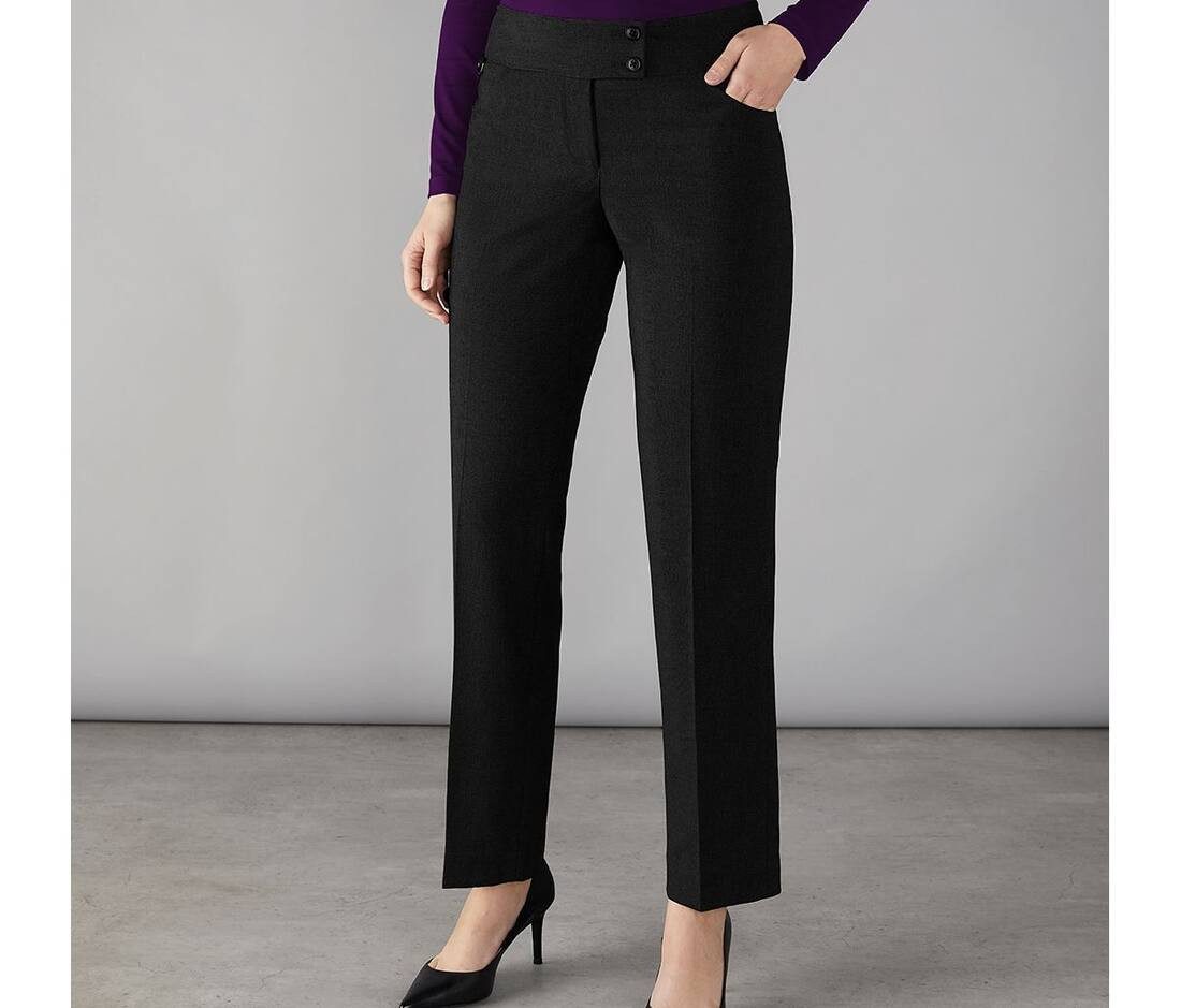 Pantalon slim Maidavale pour femme. Coupe élégante avec un pli. Fermeture boutonnée. Matériaux durables : 64% polyester recyclé, 34% viscose, 2% Lycra®.