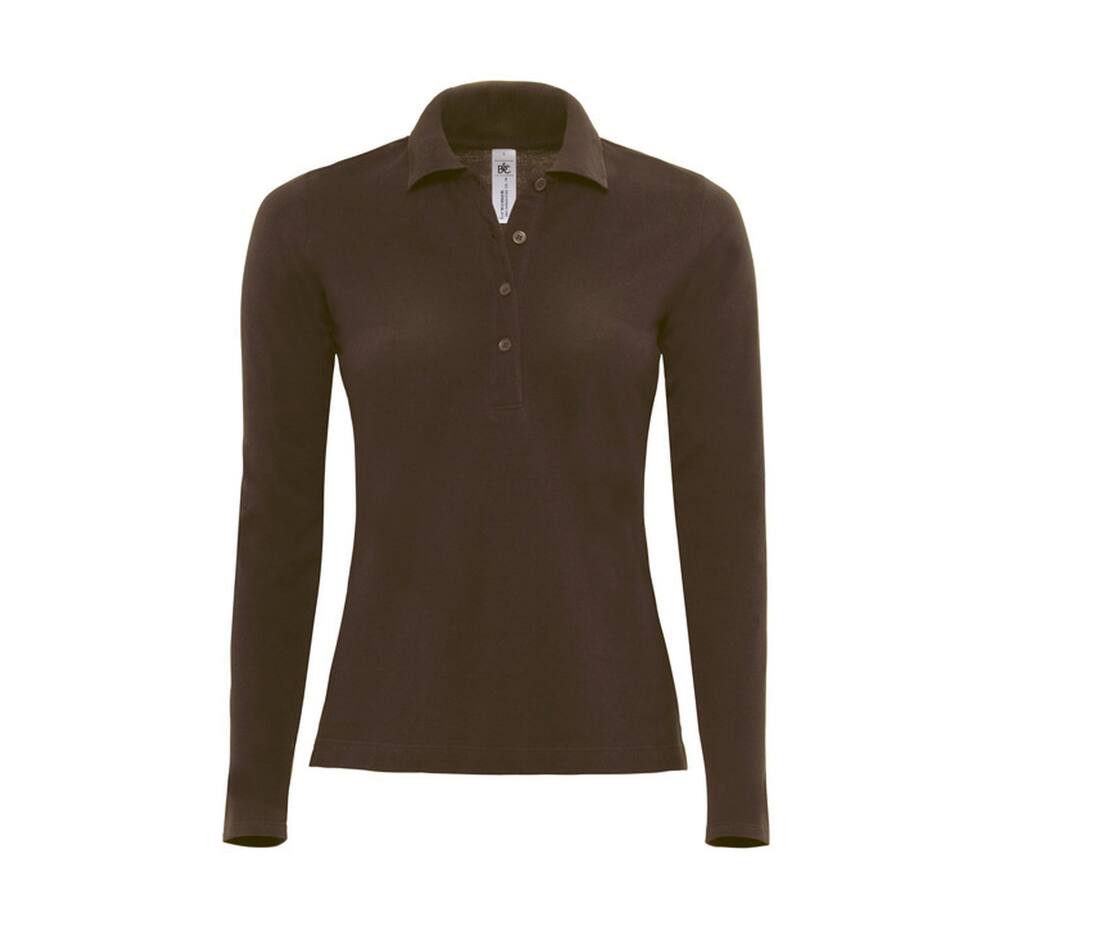 Polo pour femme à manches longues, avec une ouverture latérale. Il présente une coupe féminine et une patte à 4 boutons ton sur ton.