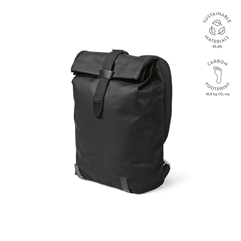 Ce sac à dos de 23L, doté d’un revêtement imperméable, représente un engagement durable : il est fabriqué en toile de coton recyclé avec un revêtement en PU (340 g/m²) et des détails en PU recyclé. Il comprend un compartiment rembourré pour ordinateur portable ainsi que deux poches intérieures. Il est livré dans un sac individuel composé de 70 % de coton recyclé et 30 % de rPET.