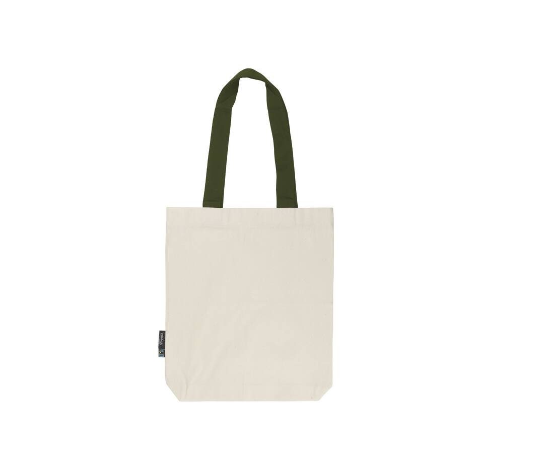Sac shopping avec des anses contrastées, fabriqué en coton bio brossé et doté d’un soufflet. Les anses mesurent 66 cm et sont contrastées. Des étiquettes Neutral et Fairtrade sont cousues sur le côté.