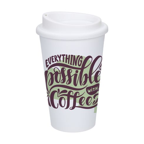Tasse à café réutilisable en plastique, à double paroi, idéale pour les déplacements. Sans BPA et approuvée pour les aliments, cette tasse est munie d’un couvercle à vis étanche avec une ouverture pour boire. Capacité de 350 ml, fabriquée en Allemagne.
