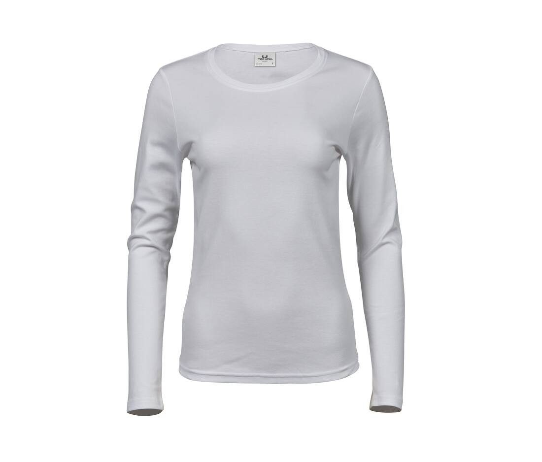 Tee-shirt manches longues femme – Double couture. Doux au toucher. Coupe ajustée. 100% coton organique certifié.