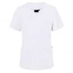 Tunique femme à manches courtes avec un col en V, adaptée notamment aux secteurs de la santé et de la beauté. Elle présente une coupe légèrement ajustée.