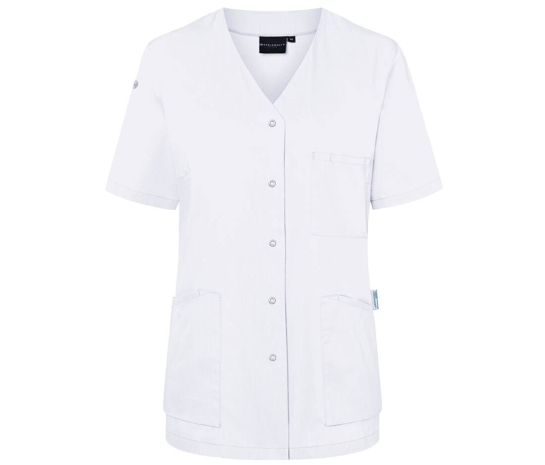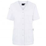 Tunique femme à manches courtes avec col en V, idéale notamment pour les secteurs de la santé et de la beauté. Sa coupe est légèrement ajustée.
